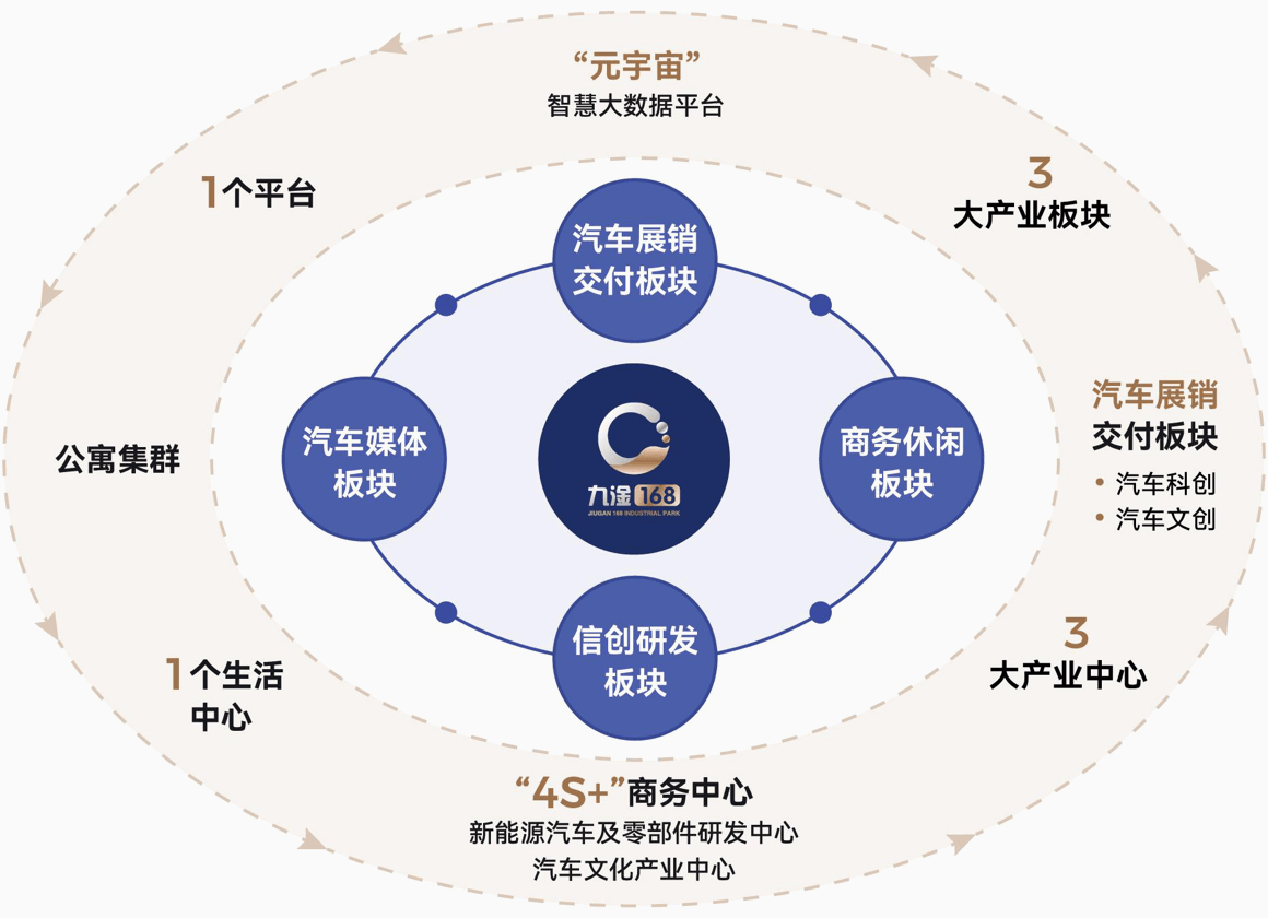 九淦168国际智能生态产业园整体规划为2大产业,4大服务,5大板块,以智造、科技、生态、绿色为特色,以融合汽车主题研发及后服务产业、信息技术创新产业为一体,通过多元功能布局与产业资源导入,全方位服务体系,助力汽车及信创产业链创新集聚。致力于打造G60科创走廊上专注于新能源汽车及信创产业的全周期生态产业园。